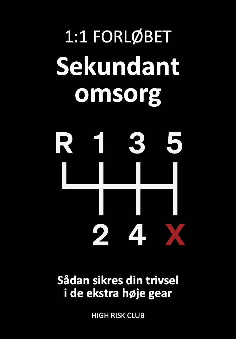 Lær også at opbygge din High Risk Club et omsorgsberedskab med dem, der kan forstå og hjælpe dig i de høje gear. De står parat i dit ringhjørne, har fokus på at sikre din trivsel, og kan tørre blod, sved og tårer væk i dit livs vigtigste kampe. Det vigtigste er, at mindst en ved, hvad du kæmper med, kæmper for og kæmper imod, som kan lede dig på den måde, du har brug for ved splitsekund skift. Den ledelse kaldes for sekundant omsorg.